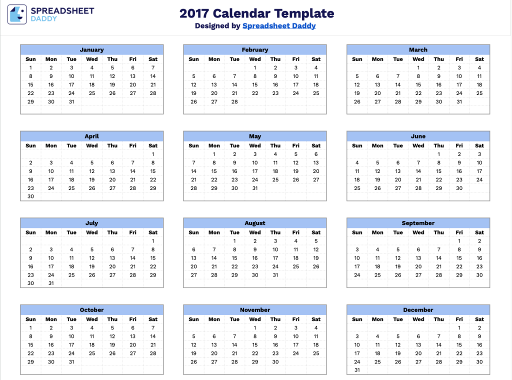 Download Spreadsheet Daddy’s Free 2017 Calendar Template
