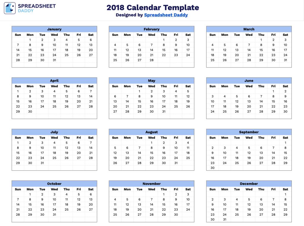 Download Spreadsheet Daddy’s Free 2018 Calendar Template