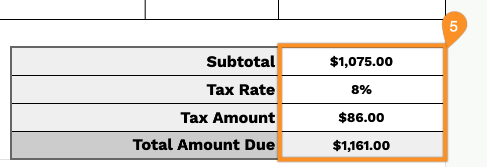 5. If applicable, enter the tax rate. The template will then compute the subtotal, tax amount, and the total value of the donation.