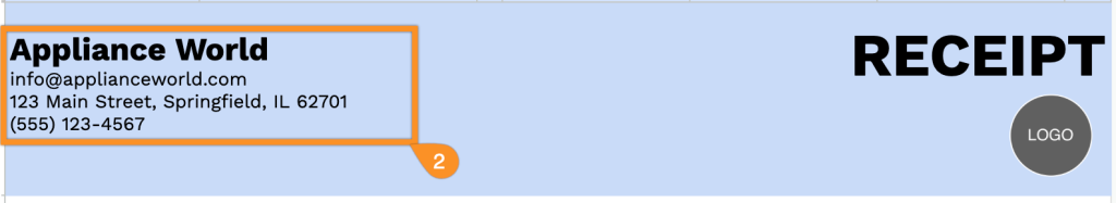 2. Add your shop details at the top, including the store name, email, address, phone number, and logo, so the receipt looks professional and easy to identify.