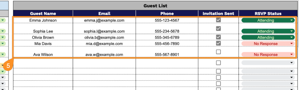 - RSVP Status: Track the response (attending, not attending, maybe, or no response).