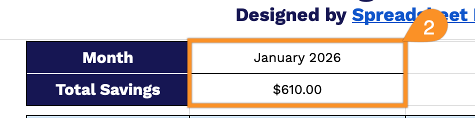 2. Select the month you are tracking. The template will automatically update the total savings as you enter your income and expenses.