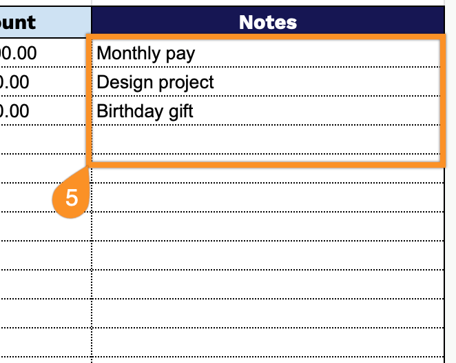 5. Use the Notes section to record explanations for unexpected expenses, reminders for upcoming payments, or exceptional circumstances affecting your budget.