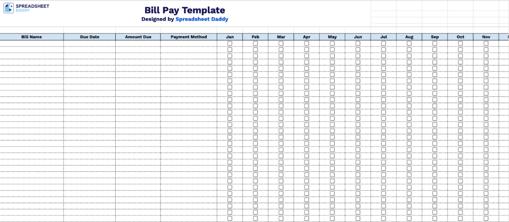 A bill pay spreadsheet is a simple tool that helps you keep track of your bills and their due dates.