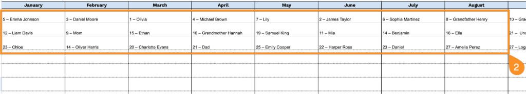 1. Get your birthday calendar by downloading it as Excel or PDF, or by creating your own copy in Google Sheets.