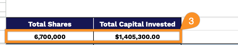 3. The top of the template automatically updates the Total Shares and Total Capital Invested as you fill in the table.
