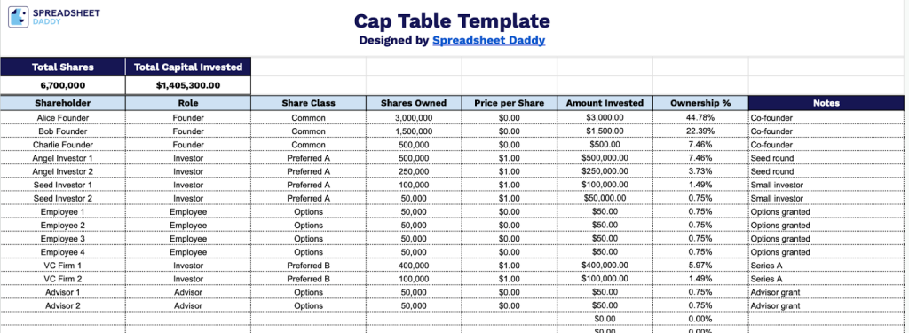 Download Spreadsheet Daddy’s Free Cap Table Template