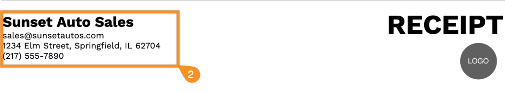 2. Add your dealership information at the top, including your company name, email, address, phone number, and logo.