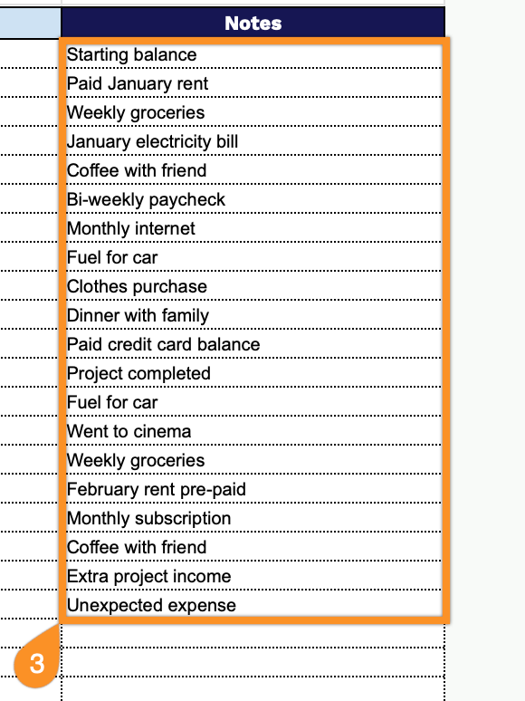 3. Use the Notes section to add extra details, reminders, or essential transaction information.