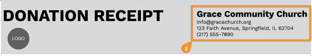 2. At the top of the template, fill in your church’s name, email, address, phone number, and add your logo.