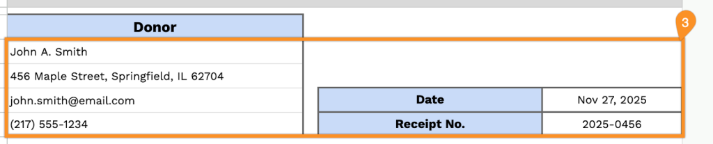 3. Include the donor’s name, contact information, donation date, and receipt number.
