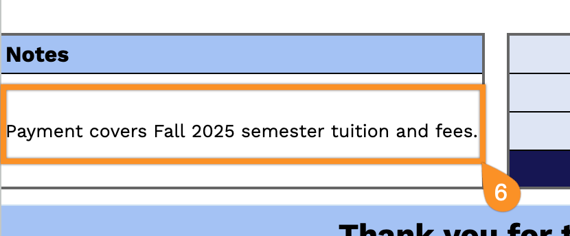 6. Use the Notes section to include important information, such as payment terms or scholarship details.
