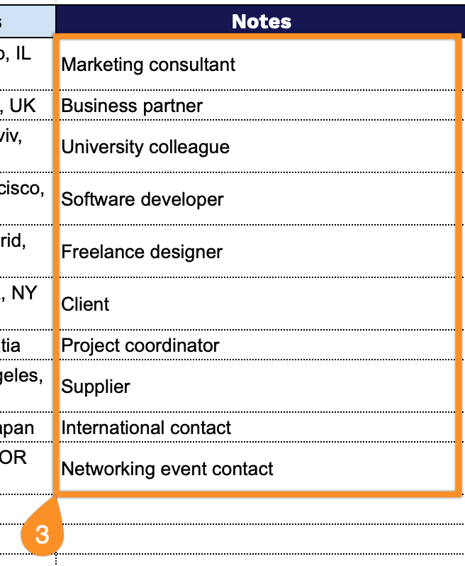 - Flexible Notes column for additional context: A dedicated Notes field lets you capture supplementary information, such as relationship type, preferred communication methods, birthdays, job titles, and other custom details that help you maintain meaningful connections with your contacts.