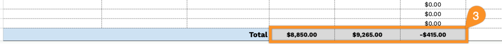 3. At the bottom of the template, you’ll see automatic totals for Projected Costs, Actual Costs, and the overall Variance, so you can instantly compare what you planned to spend versus what you actually spent.
