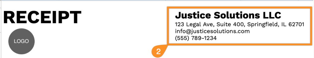 2. At the top of the template, enter your company information, including the company name, email, address, phone number, and logo.