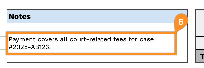 6. Use the Notes section to include any vital information, such as court case references, payment terms, or special instructions.