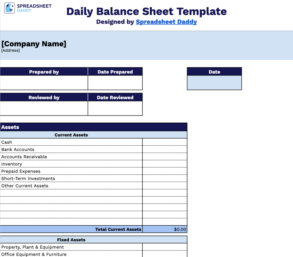 Free☝️ Daily Balance Sheet Spreadsheet Template (Google Sheets, Excel, & PDF Downloads)