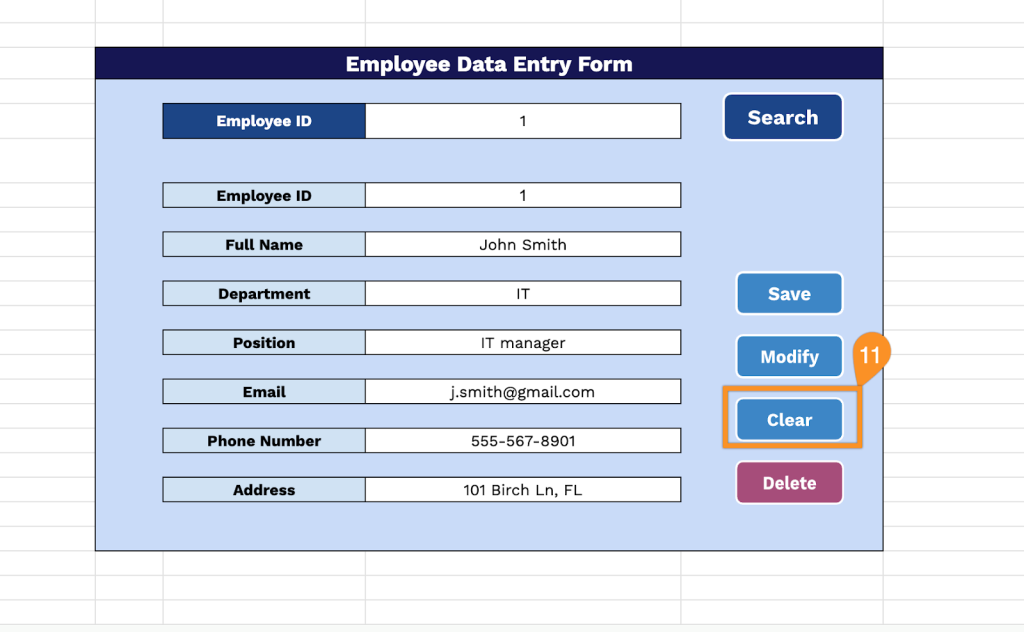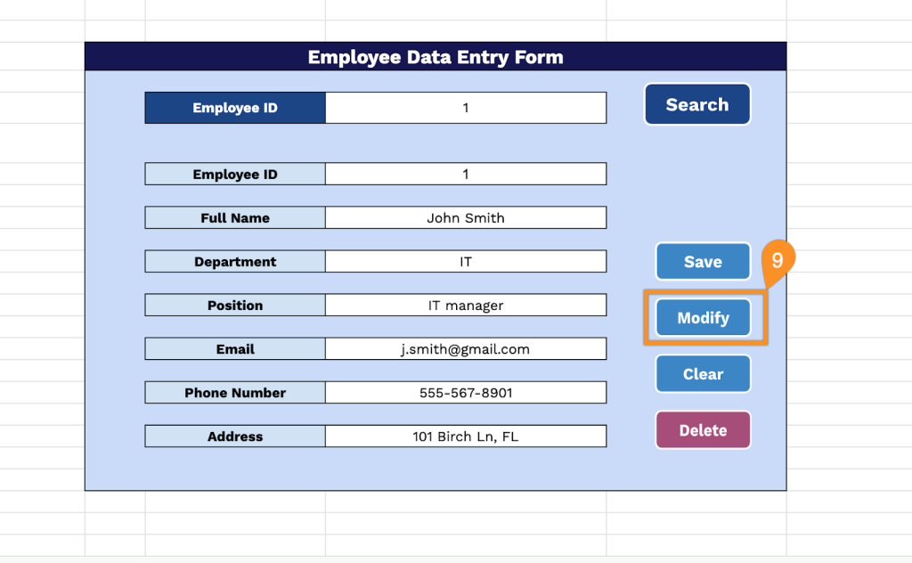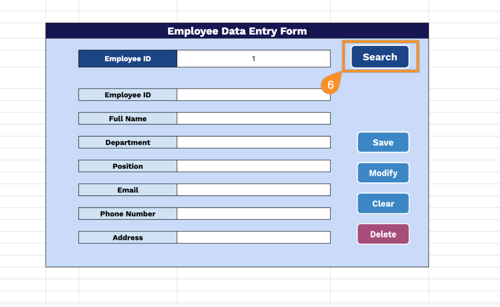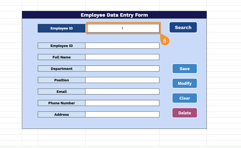 2. Input the employee’s ID, Full Name, Department, Position, Email, Phone Number, and Address.