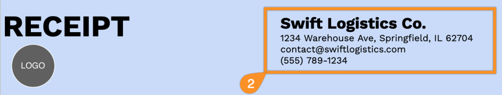 2. Enter your company details at the top, including your company name, email, address, phone number, and logo.