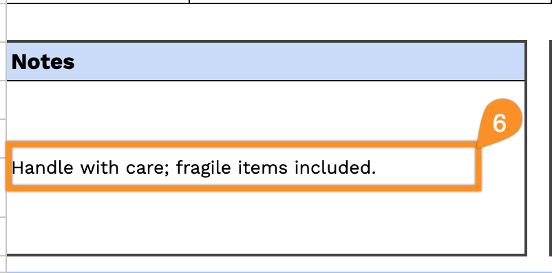 6. Use the Notes section to provide any additional details or special instructions regarding the delivery.