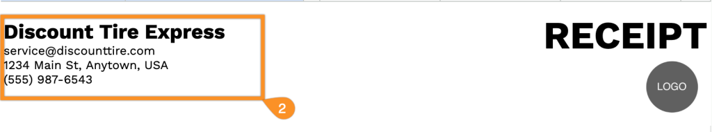 2. Start by adding your store details at the top. Include the shop name, email, address, phone number, and your logo so the receipt is clearly labeled.