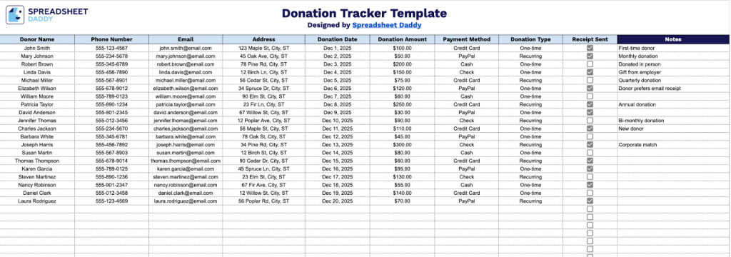 Download Spreadsheet Daddy’s Free Donation Tracker Template