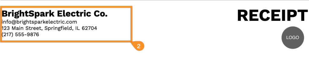 2. At the top of the template, enter your company name, email, address, phone number, and upload your logo for a professional look.