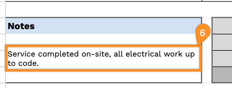 6. Use the Notes section for extra details, such as job location, work performed, warranty information, or special instructions.