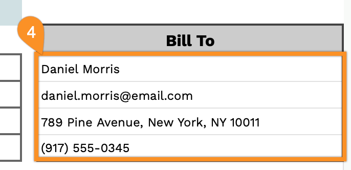 4. Complete the Bill To section with the client’s name, email, address, and phone number.