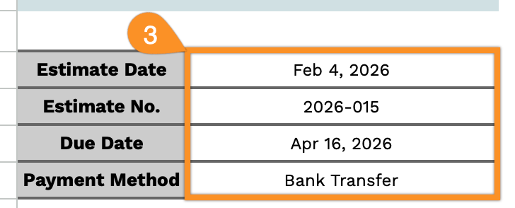 3. Fill in the estimate information, such as the estimate date, estimate number, due date, and preferred payment method.