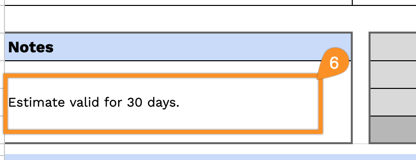 6. Use the Notes section to include any essential instructions or details relevant to the estimate.