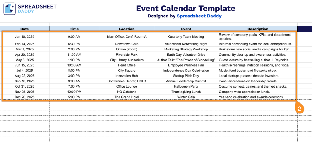 How to Use Our Event Calendar Spreadsheet Template