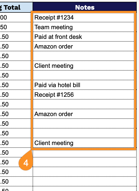 4. Include explanations for unusual expenses, reimbursements, or any details that clarify the transaction in the Notes section.