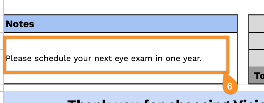 • Professional notes and acknowledgment area: Add custom information such as payment terms, insurance details, appointment reminders, or return policies in the notes section.