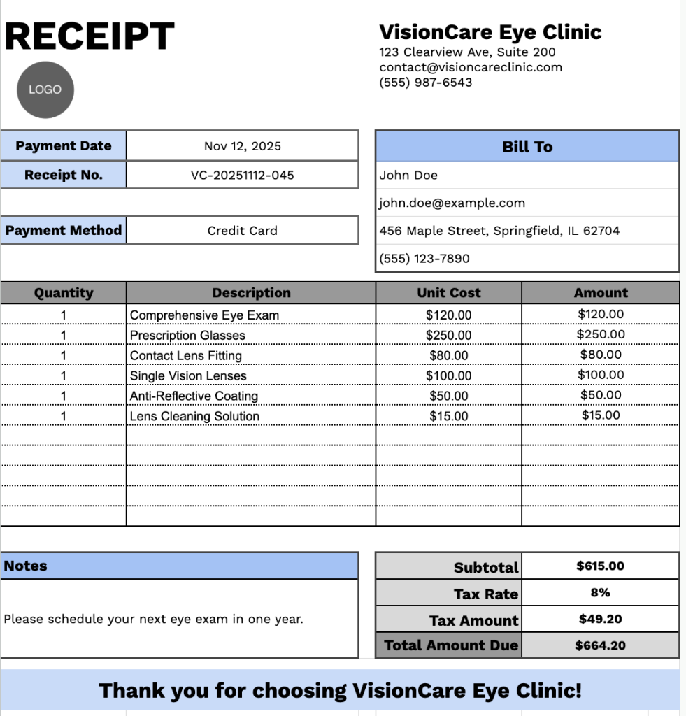 Free☝️ Eye Doctor Receipt Template (Google Sheets, Excel, Word, Google Docs, & PDF Downloads)