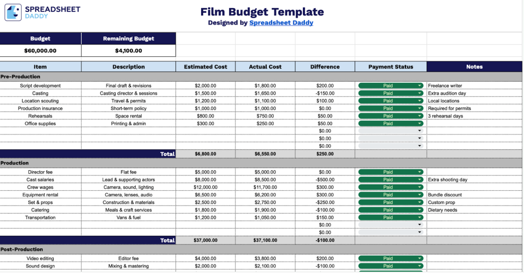 Free☝️ Film Budget Template (Google Sheets, Excel, & PDF Downloads)