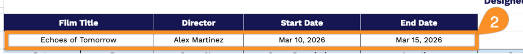 2. Start by entering the film title, director’s name, and the overall start and end dates of the production.