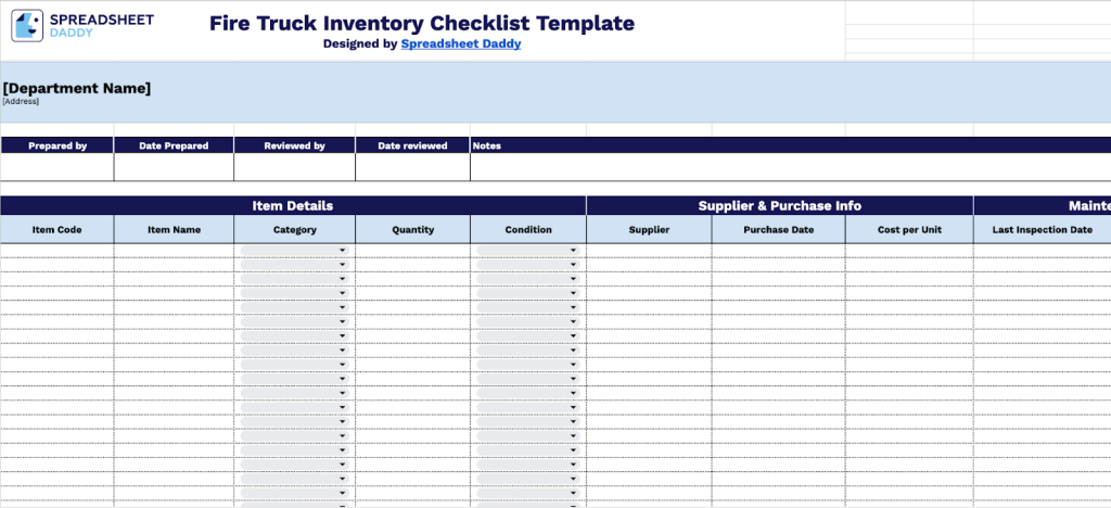How to Use Our Fire Truck Inventory Spreadsheet Template