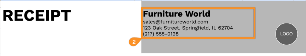 - Customizable business information fields: The header section includes editable placeholders for company name, email address, physical address, and phone number, allowing you to quickly brand the receipt with your furniture store or business details for professional documentation.