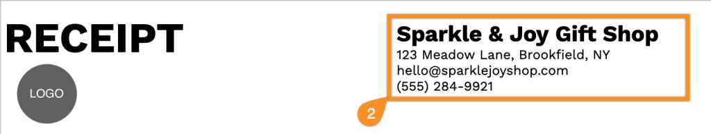 - Header section with customizable business details: Editable fields for company name, address, email, and phone number provide a clear and professional presentation of the receipt information.