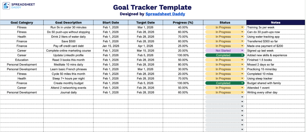 Download Spreadsheet Daddy’s Free Goal Tracker Template