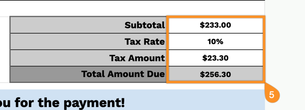 5. Enter your local sales tax rate, and the template automatically calculates the subtotal, tax amount, and total for you.