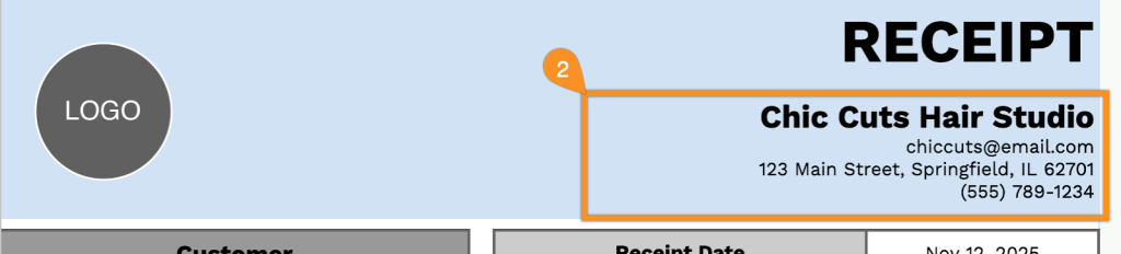 2. Add your salon name, logo, contact email, phone number, and address at the top.
