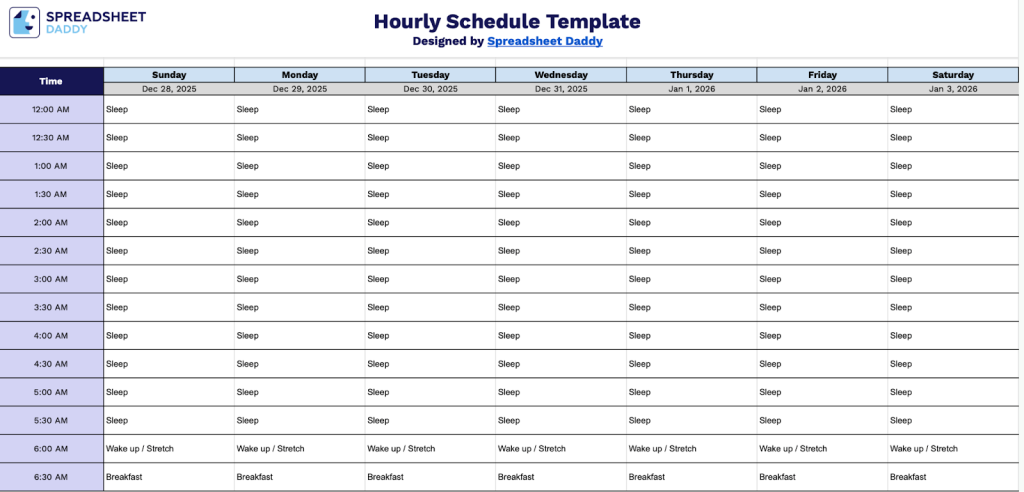 Download Spreadsheet Daddy’s Free Hourly Schedule Template