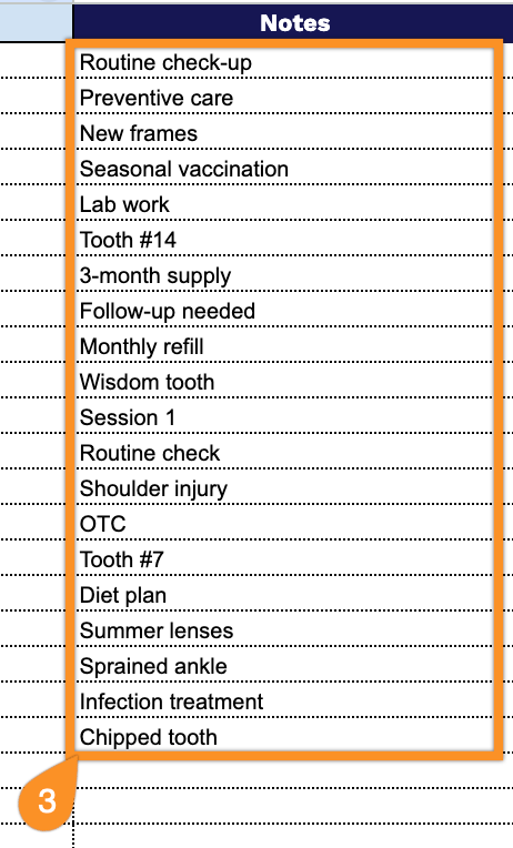 • Date: Record the exact date when the medical expense or health service was incurred.