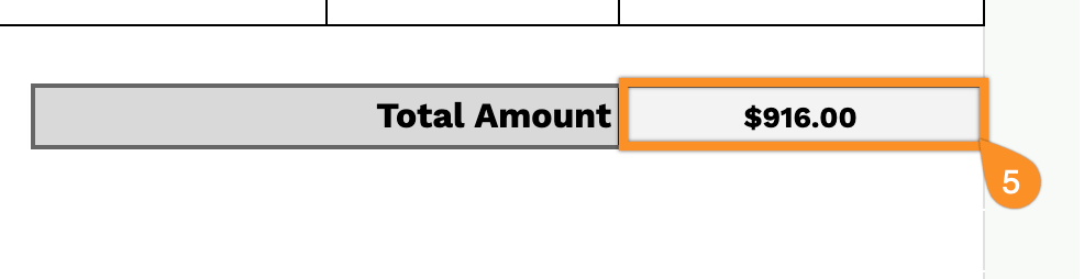 - Automatic amount calculation fields: Each row includes an Amount column that displays the individual line-item total based on quantity and unit cost, with all values feeding into a prominent Total Amount summary box at the bottom for clear financial documentation.