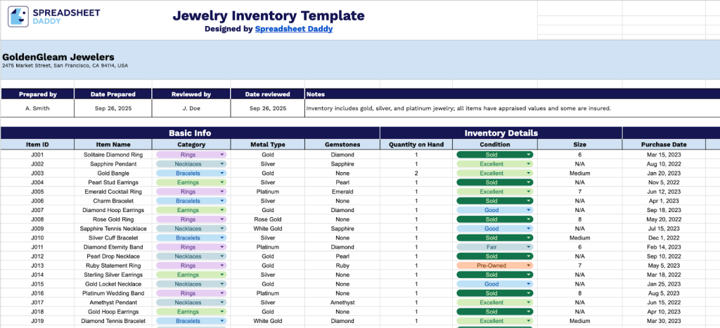 Free☝️ Jewelry Inventory Spreadsheet Template (Google Sheets, Excel, & PDF Downloads)