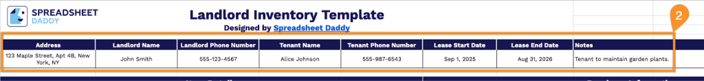 Our Landlord Inventory Template helps landlords organize property assets, tenant details, and lease information in a single location.
