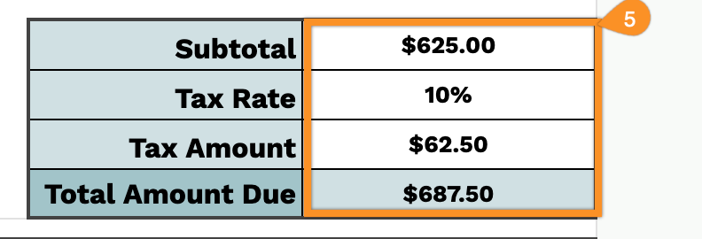 5. Enter your local sales tax rate in the designated field. The template does the math for you, calculating the subtotal, tax amount, and final total the customer owes or has paid.