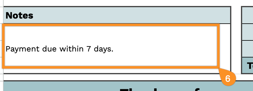 6. Use the notes section to add payment terms, thank-you messages, special instructions for future visits, or details about warranty and follow-up services.